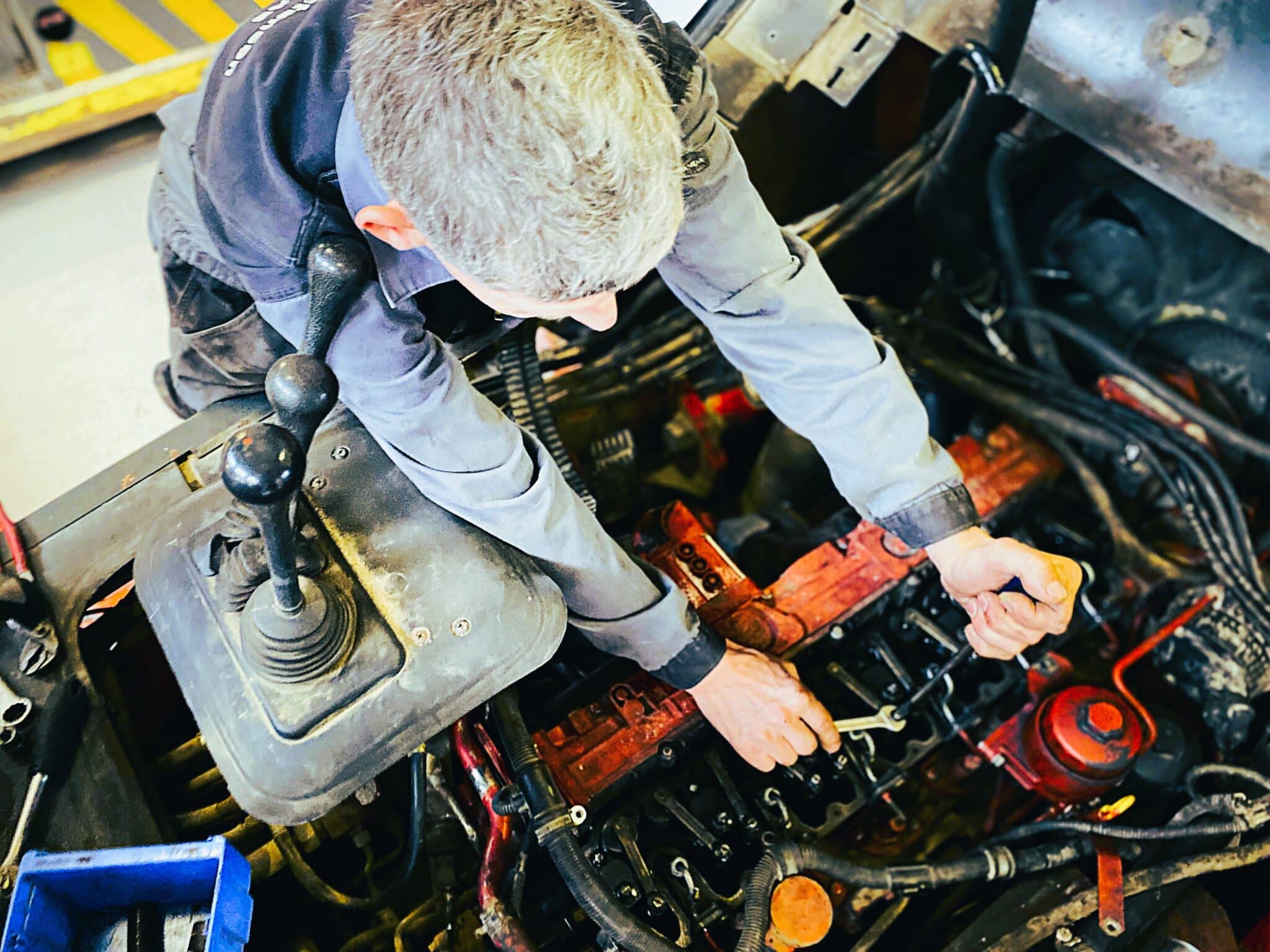 Vores servicepriser er altid konkurrencedygtige. På vores værksted og fra vores 5 servicevogne klarer vi enhver opgave, uanset om det drejer sig om hovedrenovering af motorer, reparation af hydraulik, el-problemer eller udskiftning af trækbandager og dæk.
