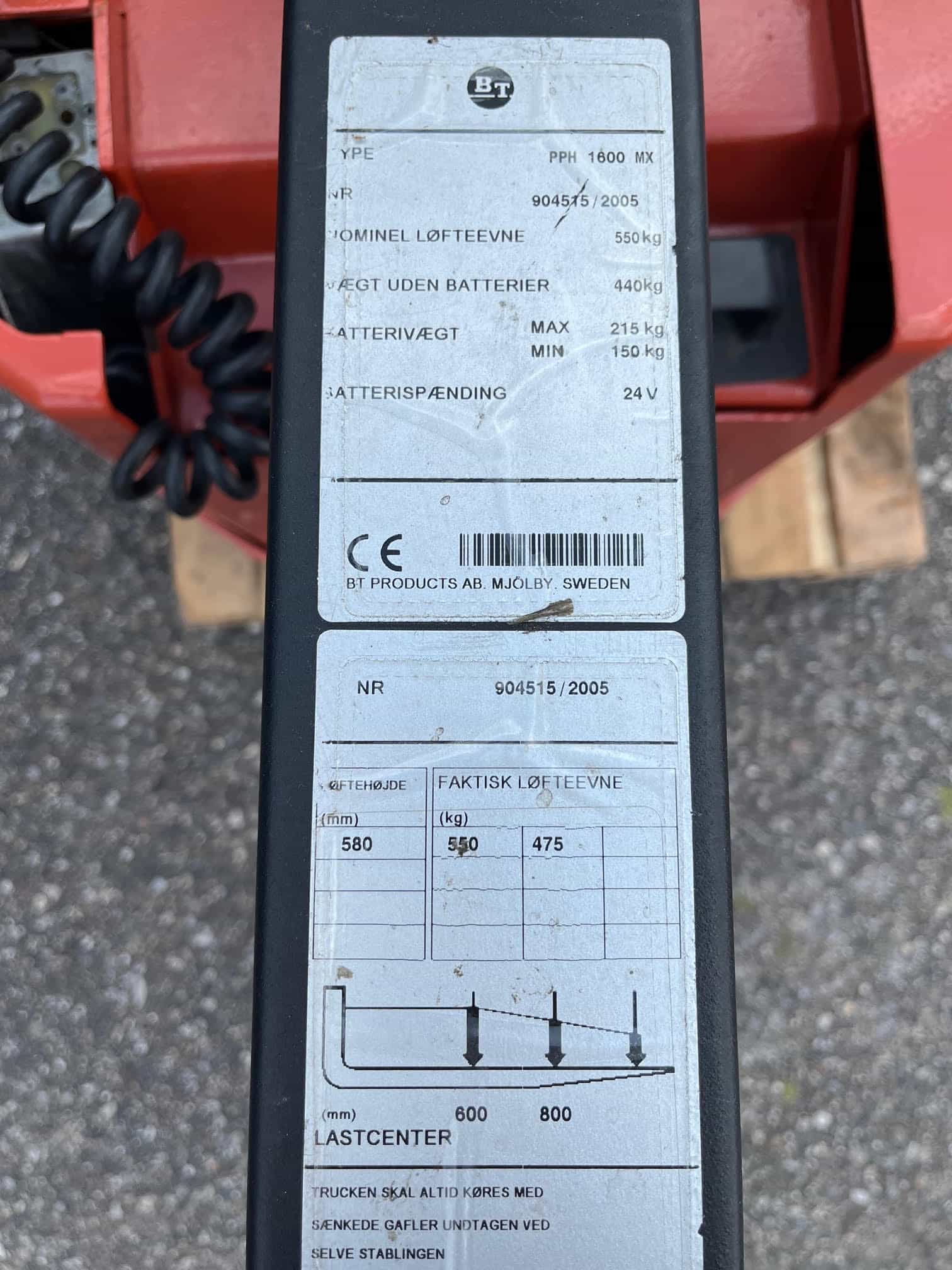 MODEL: PPH 1600MX LØFTEKAPACITET: 1600 kg LØFTEHØJDE: 600 mm
